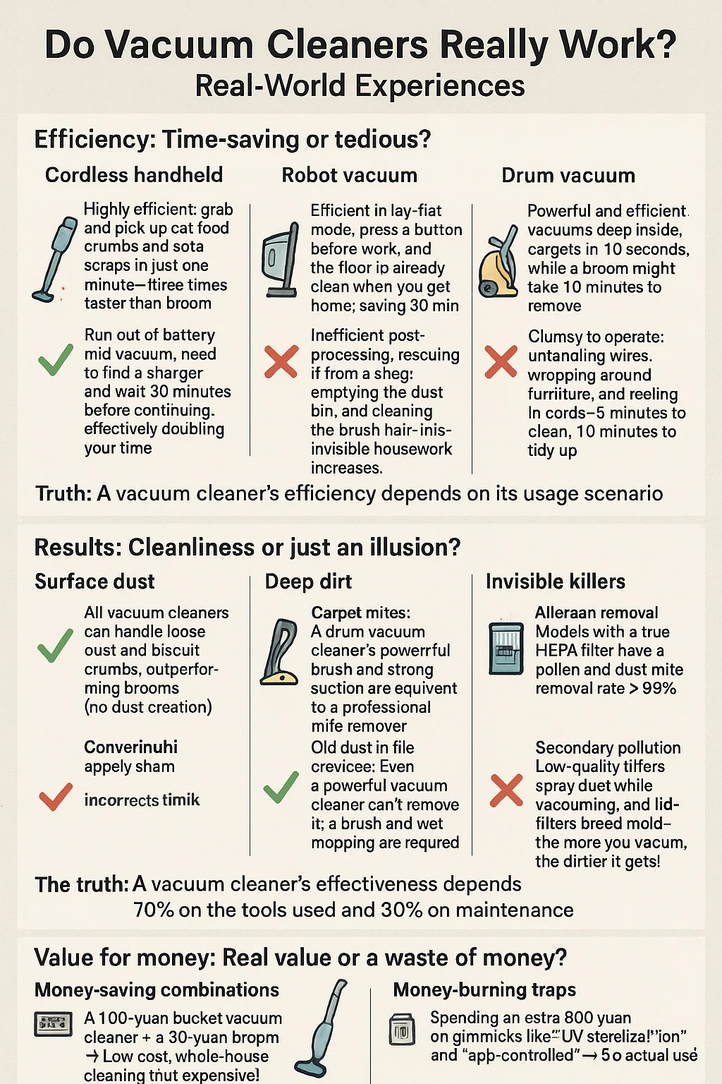 Money-saving combinations: ► A 100-yuan bucket vacuum cleaner + a 30-yuan broom → Low-cost, whole-house cleaning (but expensive). ► A 1,000-yuan vacuum cleaner + monthly cleaning fee savings → 2-year payback (ideal for lazy people).